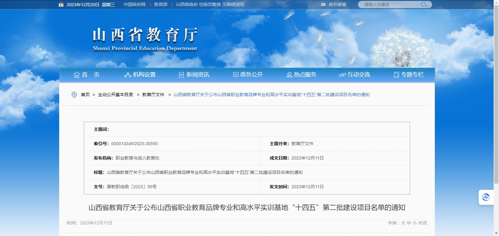 近日,山西省教育廳公布山西省職業(yè)教育品牌專業(yè)和高水平實訓基地“十四五”第二批建設(shè)項目名單的通知,高職學校38所,中職學校71所,10個自籌項目。
